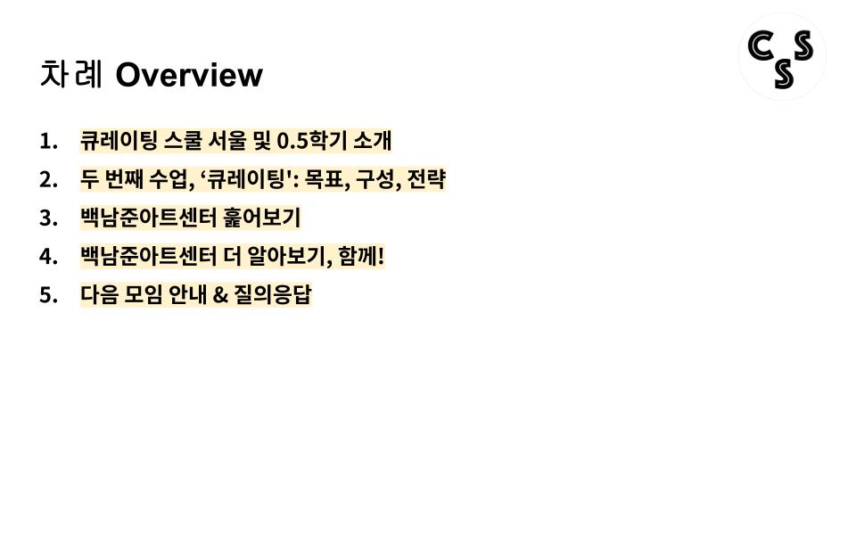2024년 10월 12일 오후 7시 30분부터 약 2시간 가량, 큐레이팅 스쿨 서울 0.5학기의 두 번째 ‘수업’에 대한 오리엔테이션이 진행되었습니다.